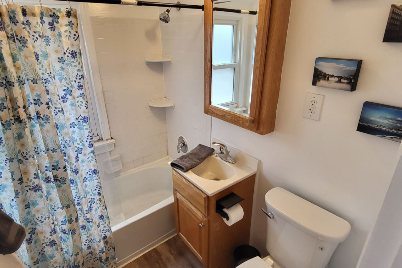 September 2025 3.00The dishes in cupboard were dirty with utensils on top. kitchen needed a good scrub. It didn't feel clean. Never said bathroom was upstairs.