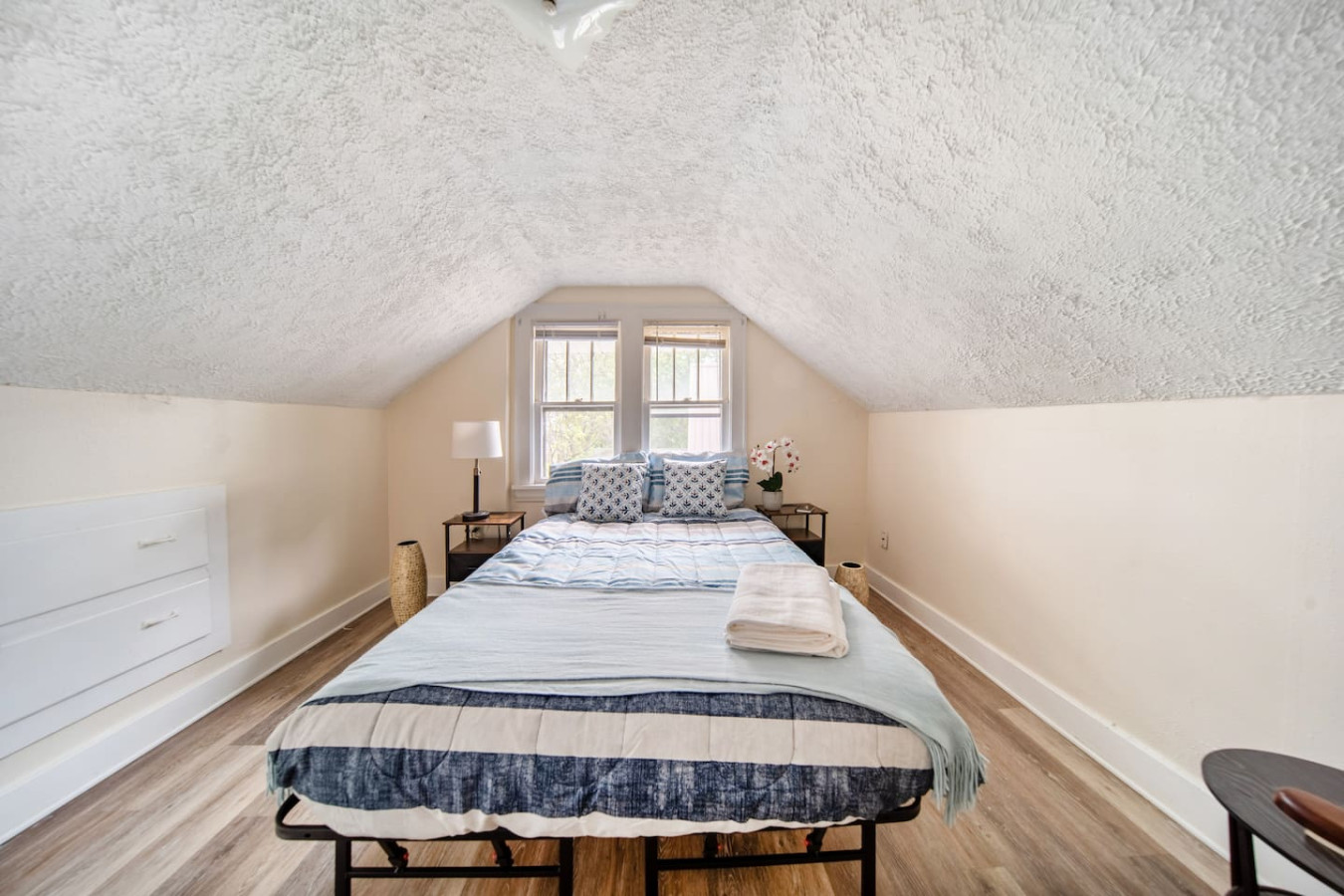 July 2025 1.00Overall not a good experience. Sheets were filthy with questionable crusty stains, mouse poop on table in living room, bathroom floor was sticky so we mopped it ourselves, no clear house instructions listing wifi info and password, tv remote was not easy to locate, host took over 10 hours to respond to simple questions. No central AC, just window units, but not all bedrooms have window units so not all bedrooms comfortable for sleeping in during summer. House is also directly next to the highway so it is insanely loud 24/7. Way overpriced for what it is. Positive note is it’s a safe and friendly neighborhood and the cat next door, Hero, is very cool.