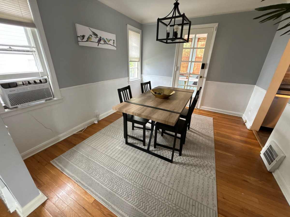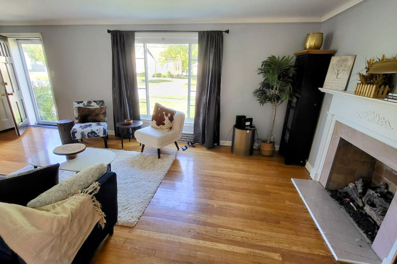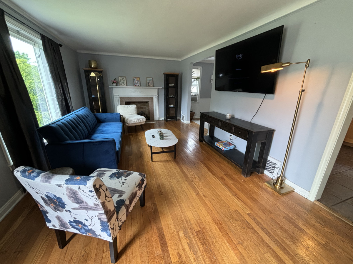 / nightHave fun with the whole family at this stylish 3-bedroom home in a quiet neighborhood, available for monthly rentals. As soon as you walk in, you'll be taken in by the lovely front room with wood flooring and a large fireplace. Relax in the comfortable furnishings and enjoy a show on the extra-large 70" Smart TV. Step into the dining room where you can gather the family for a meal, with seating for six. The kitchen has newer appliances, beautiful wood cabinetry and all the amenities of home. Upstairs you'll find the three bedrooms, all with wood flooring. There are two comfortable queen bedrooms (each with Smart TVs) and a full bedroom (plus there's a full-sized futon for another guest). And the full bathroom is stocked with towels and toiletries for your comfort. This home is available for monthly rentals only. Also, we love pets but because of the genuine wooden floors, we need to be a little extra cautious. So please contact us if you're considering bringing a pet during your stay.