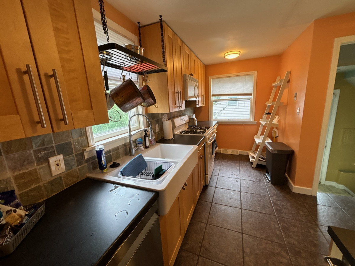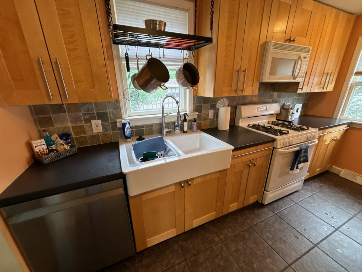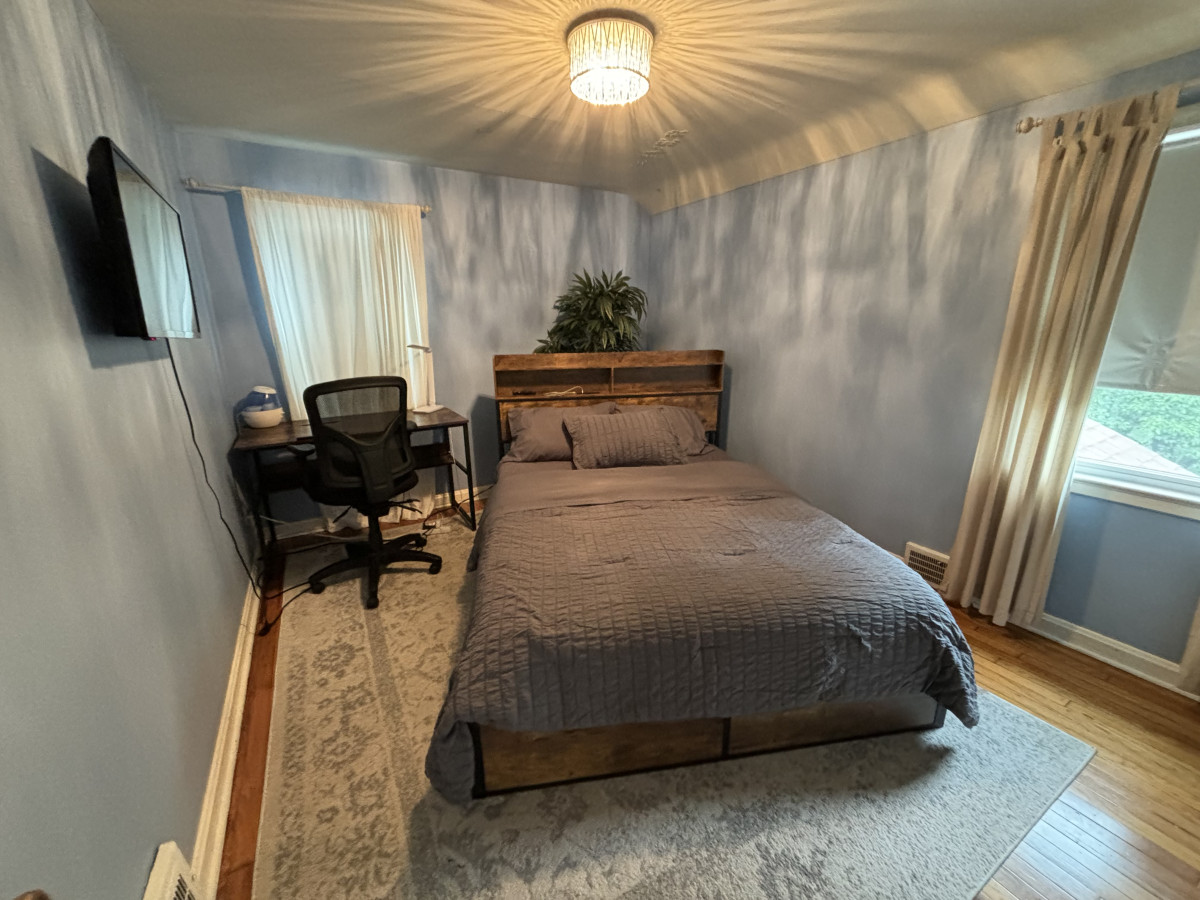 / nightHave fun with the whole family at this stylish 3-bedroom home in a quiet neighborhood, available for monthly rentals. As soon as you walk in, you'll be taken in by the lovely front room with wood flooring and a large fireplace. Relax in the comfortable furnishings and enjoy a show on the extra-large 70" Smart TV. Step into the dining room where you can gather the family for a meal, with seating for six. The kitchen has newer appliances, beautiful wood cabinetry and all the amenities of home. Upstairs you'll find the three bedrooms, all with wood flooring. There are two comfortable queen bedrooms (each with Smart TVs) and a full bedroom (plus there's a full-sized futon for another guest). And the full bathroom is stocked with towels and toiletries for your comfort. This home is available for monthly rentals only. Also, we love pets but because of the genuine wooden floors, we need to be a little extra cautious. So please contact us if you're considering bringing a pet during your stay.