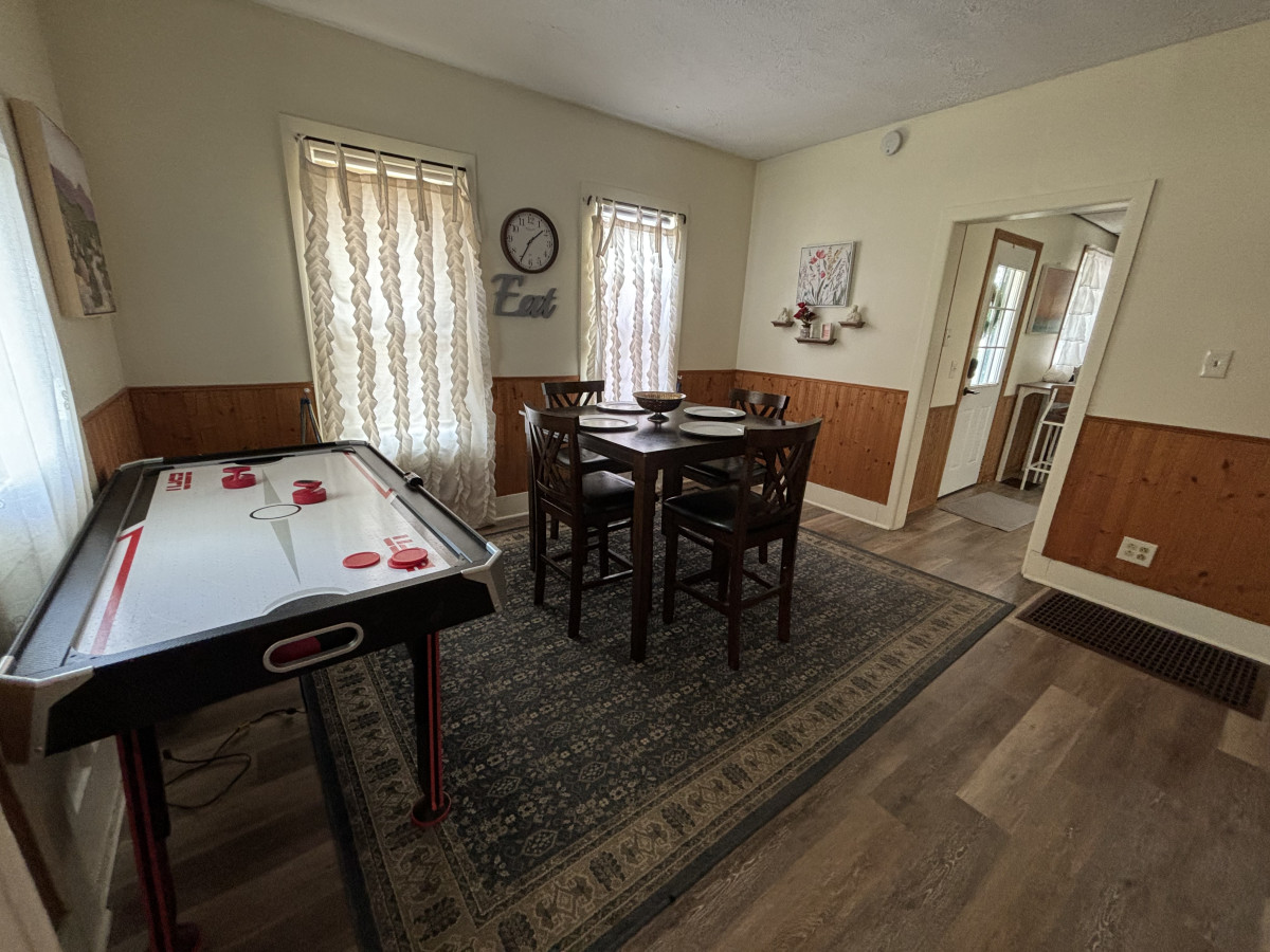 September 2024 5.00Great place. very clean. Older home with slanted ceilings and steep stairs for those with mobility issues, but there is a single bed and full bathroom on main level. This would be a very fun stay for those with kids. It has bunk beds, air hockey, board games. and you could walk next door to the root beer stand ( but it's closed Mondays).