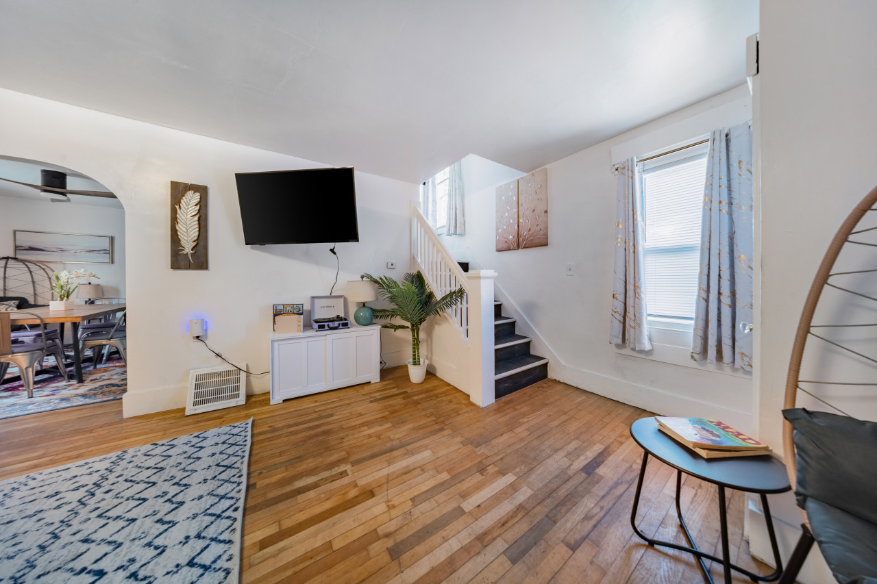 / nightThis charming little house in south Akron offers a clean, comfortable home for up to 7 people with a super-comfortable king bed and two queens. It's also ideally located for quick access to everything Akron has to offer, making this the perfect place for your Akron stay. From the moment you walk in the front door, you'll be dazzled by the cozy comfort, stylish décor, and endless amenities. The spacious living area features stylish, comfortable furnishings to accommodate your whole family or to entertain friends. The open kitchen has ample counter space and storage, plus all the cookware and supplies you need for preparing meals. Head to the three bedrooms for a night's rest: there's one king bed and two queens. Then step outside and enjoy the yard on a warm summer day. Sit and relax on the front porch, or gather with friends around the fire pit in the back yard. There's also plenty of off-street parking, free on-site laundry facilities, free WiFi, and multiple Smart TVs to ensure your stay is enjoyable and comfortable. This home is conveniently located near Interstate 76, so you're just minutes from Akron area sites, shops, restaurants, and more. Don't miss out on the opportunity to make this your home away from home when visiting Akron. .